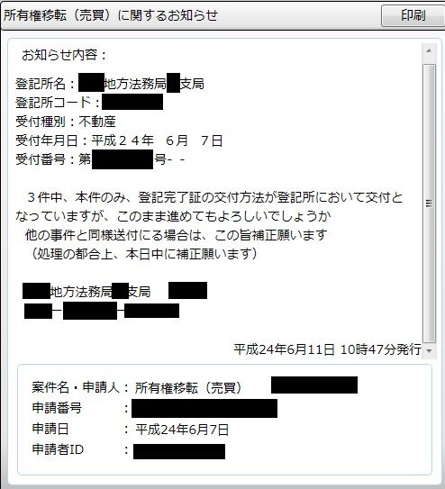 ・・・申請した3連件のうち、2件目だけ登記完了証を「窓口受領」にしてしまっていたようです。
